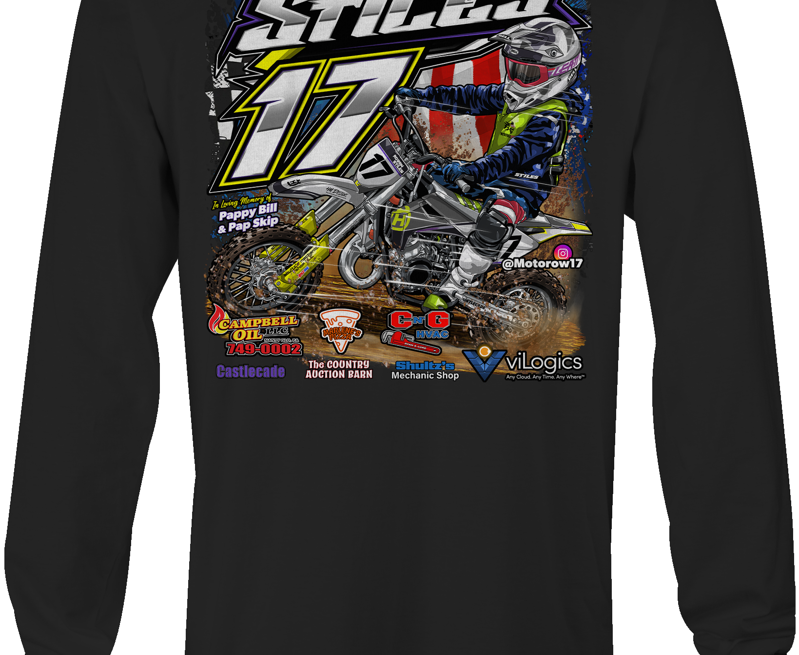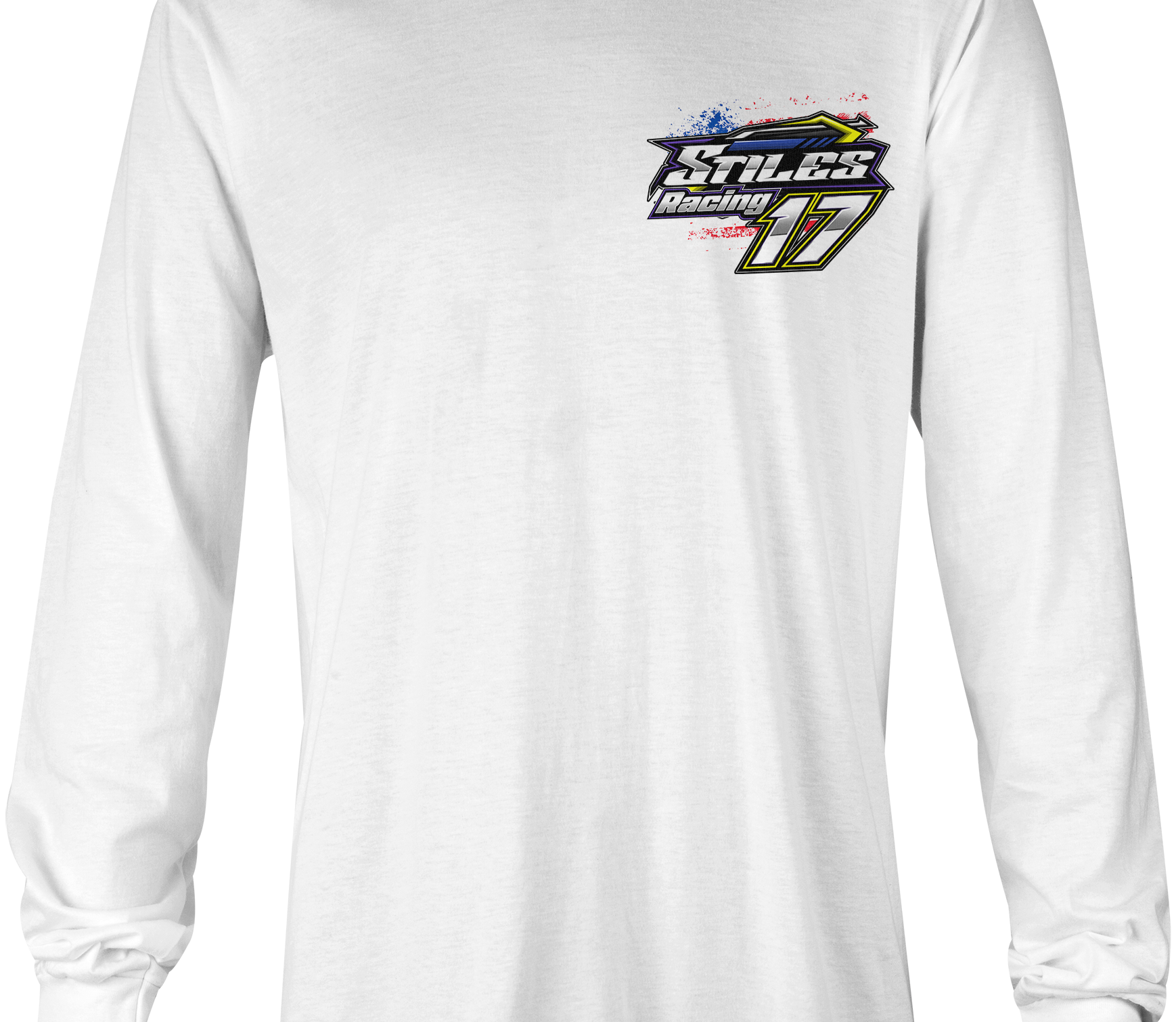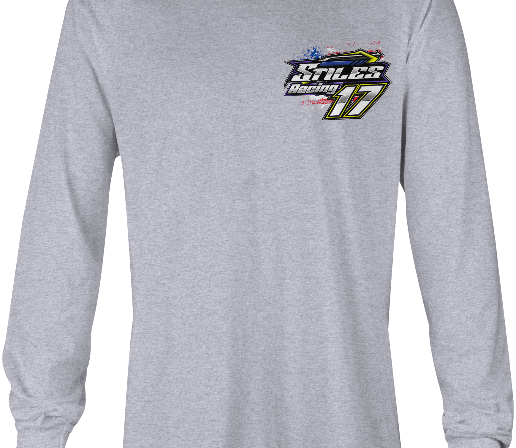 Support Stiles Racing with their custom apparel! Available in Black, Sports Gray and White. Graphics are direct to garment printed with a left chest image and a full back image.