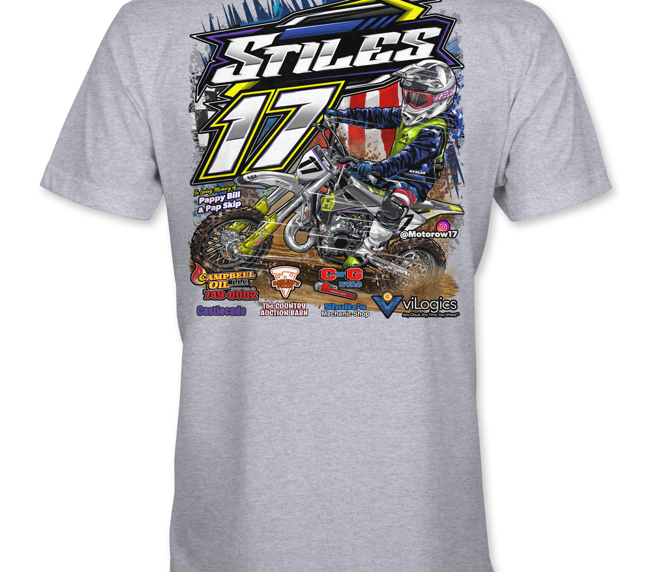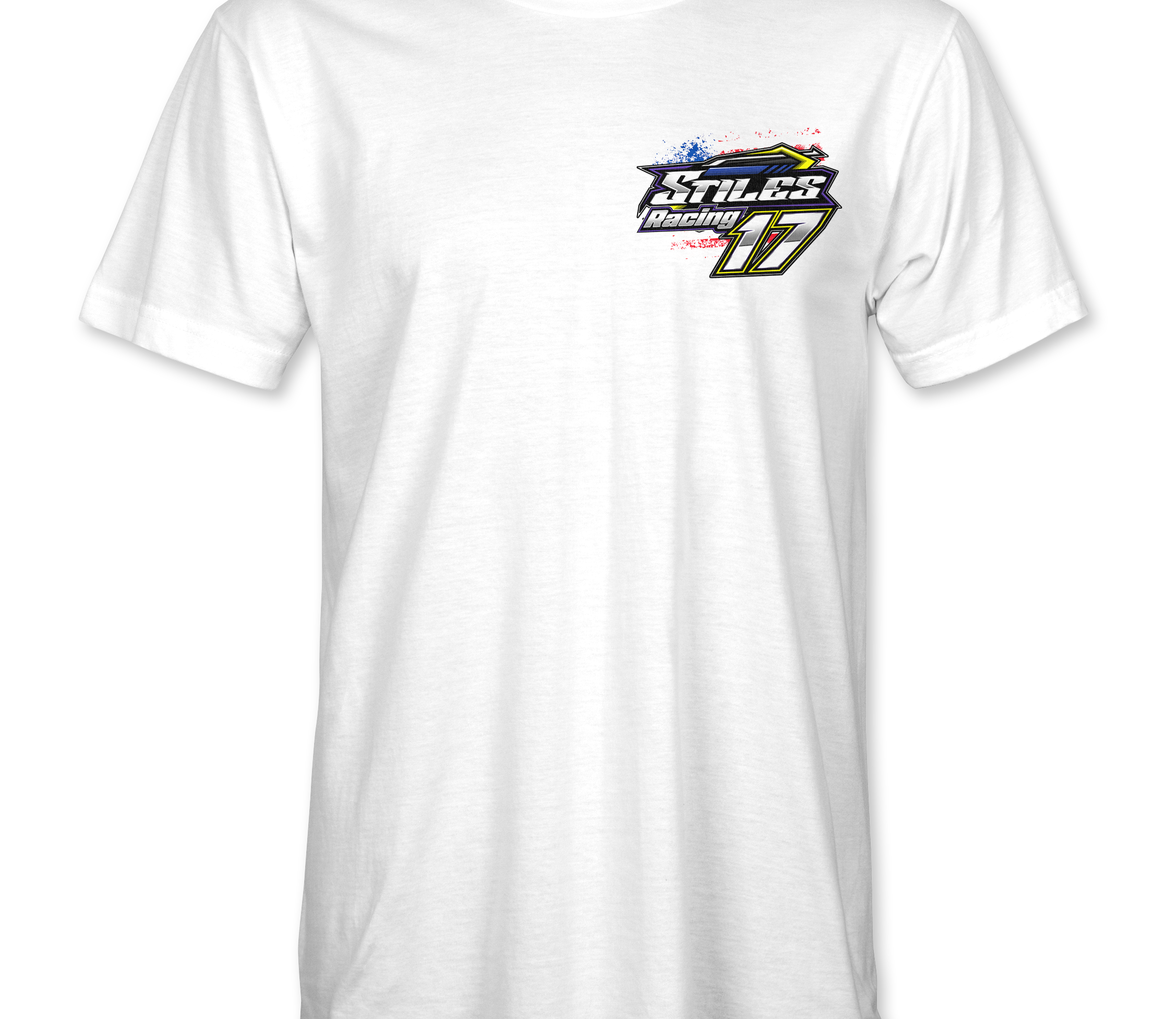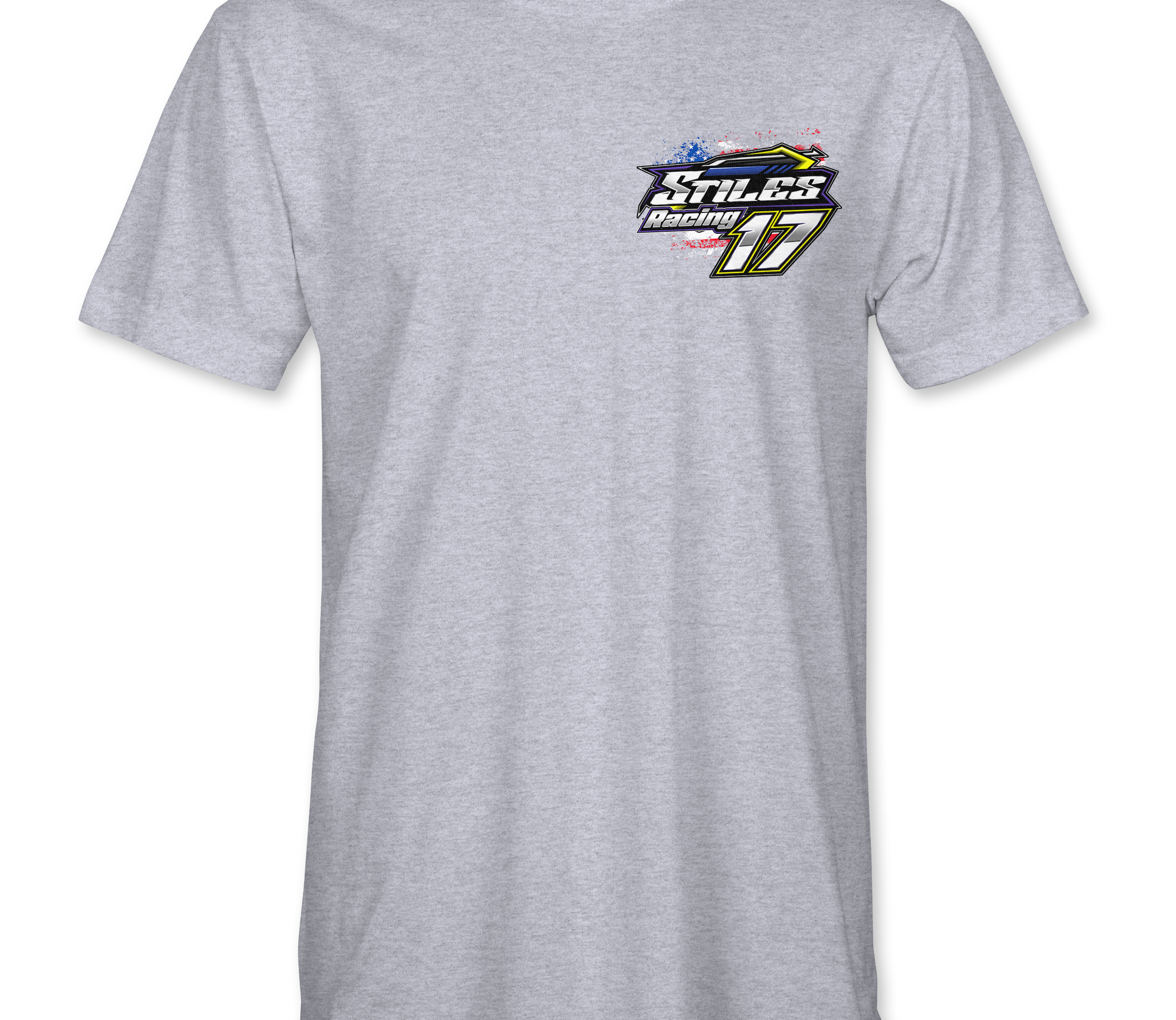 Support Stiles Racing with their custom apparel!  Available in Black, Sports Gray and White. Graphics are direct to garment printed with a left chest image and a full back image.