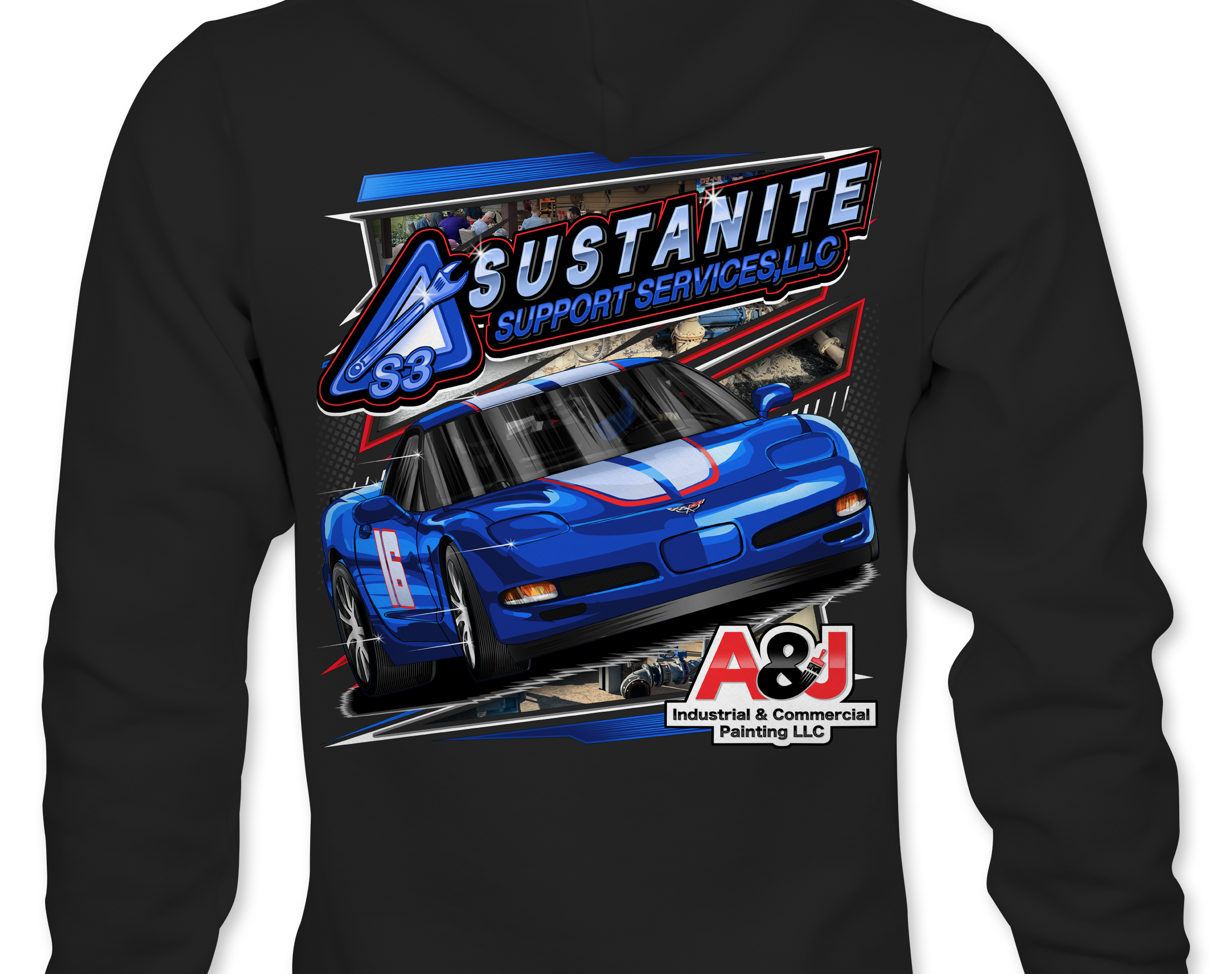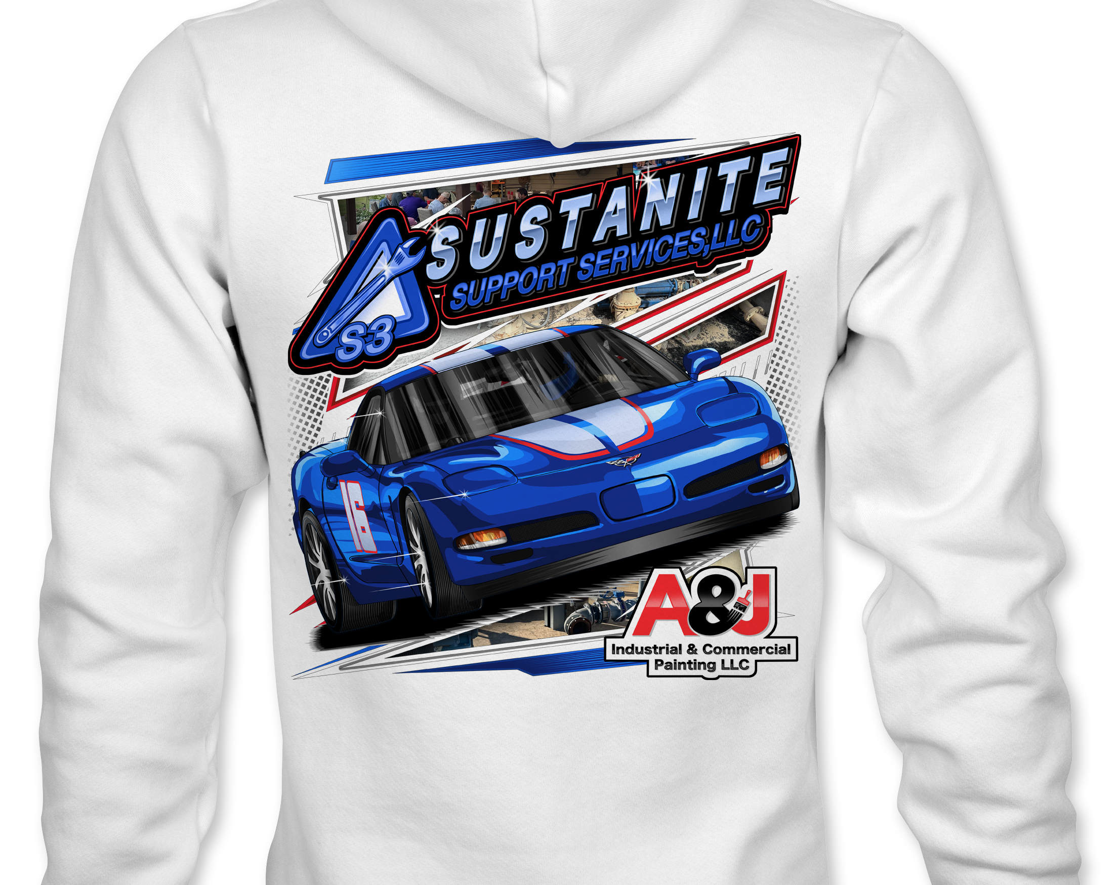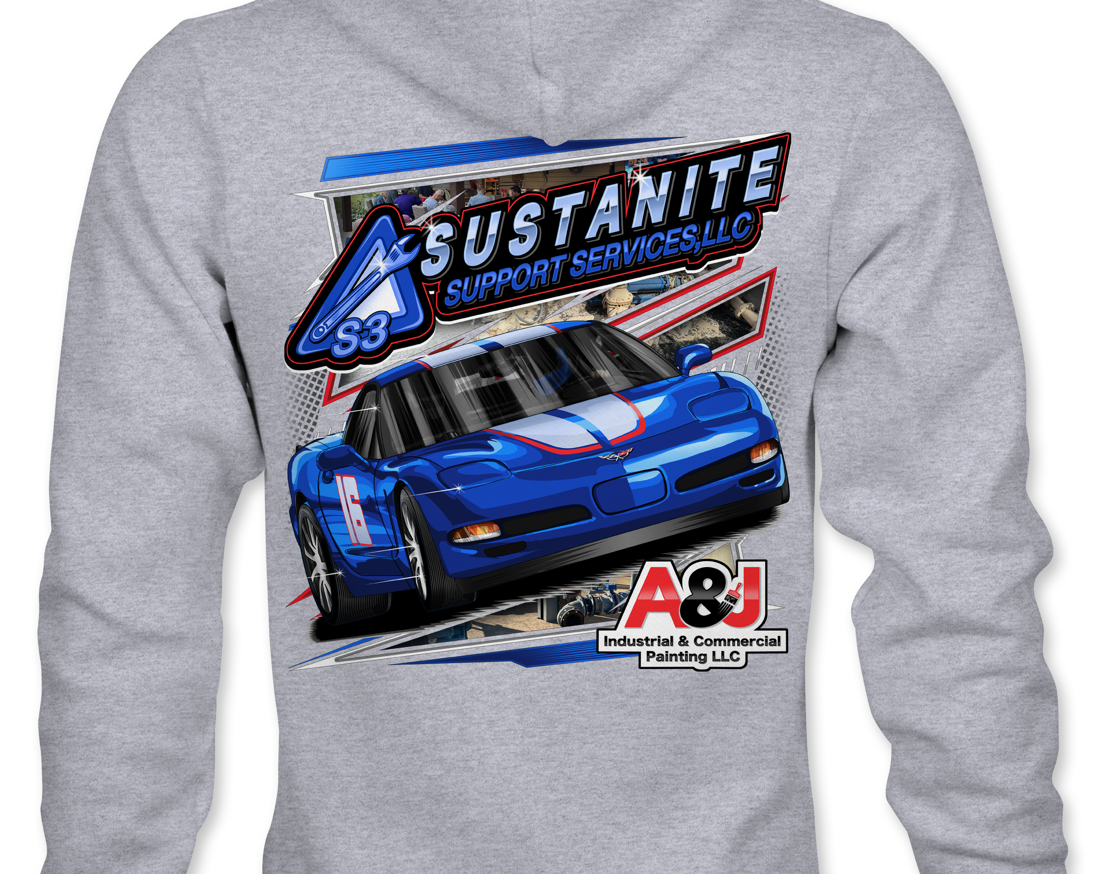 Support Sustanite Racing 2025 with their custom apparel! Available in Black, Sports Gray and White. Graphics are direct to garment printed with a left chest image and a full back image.