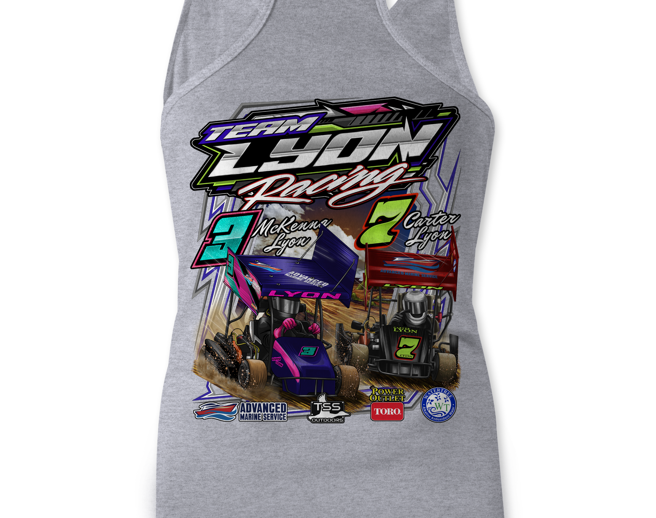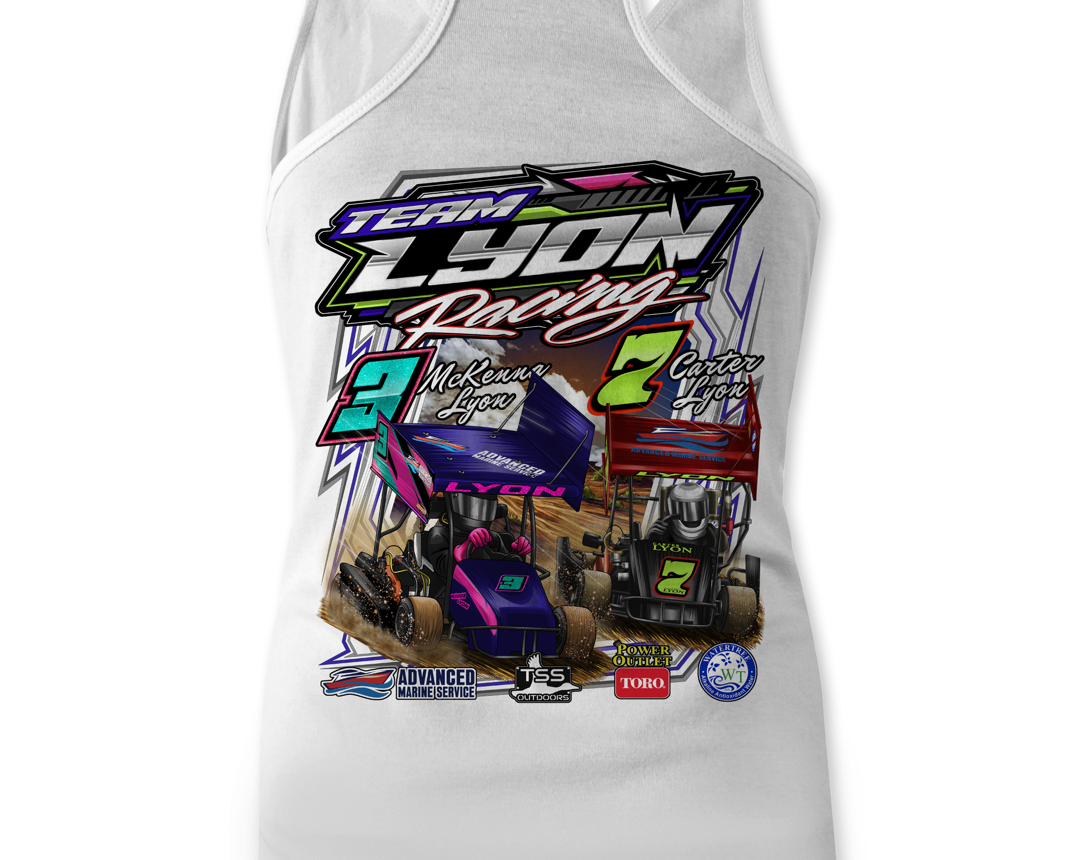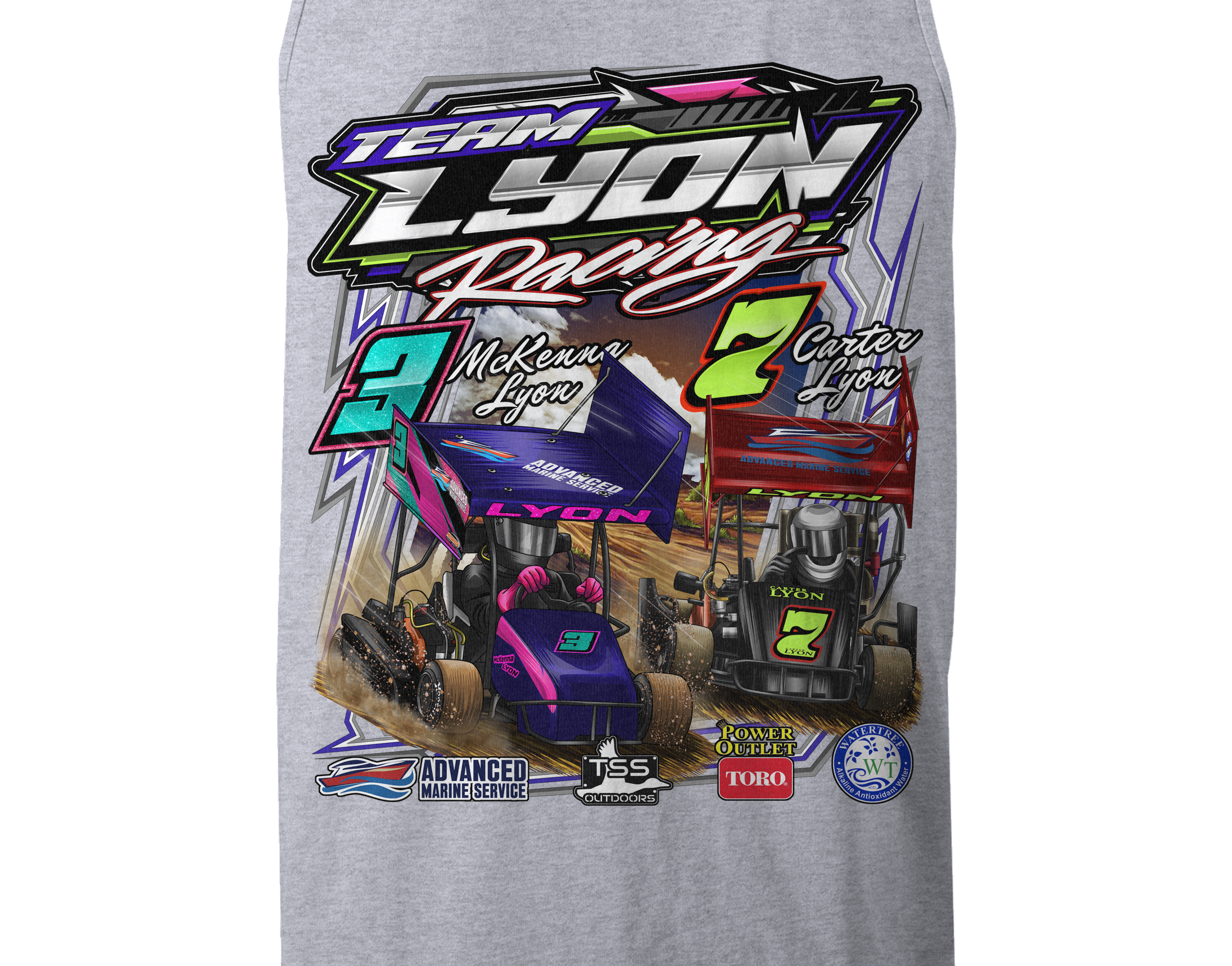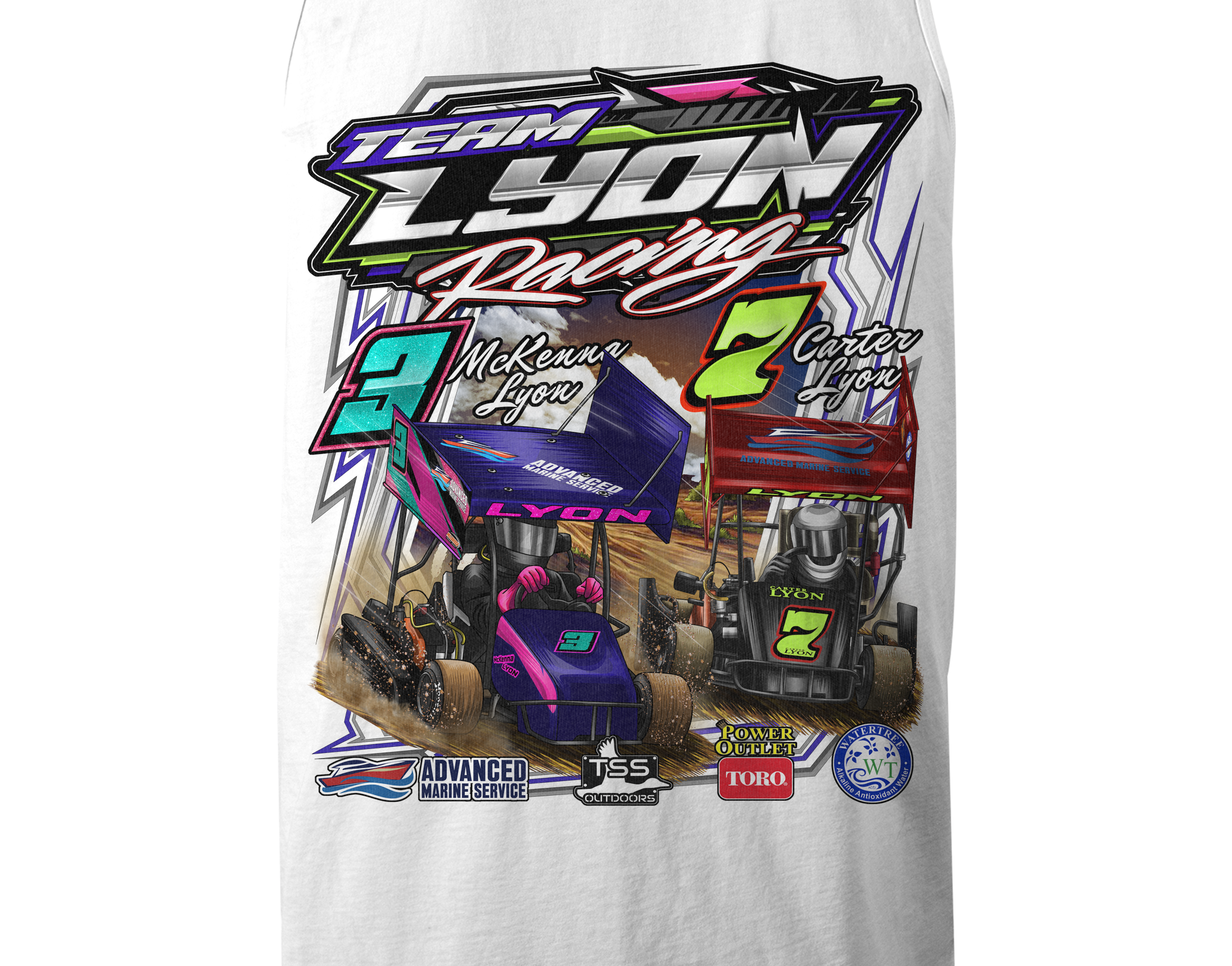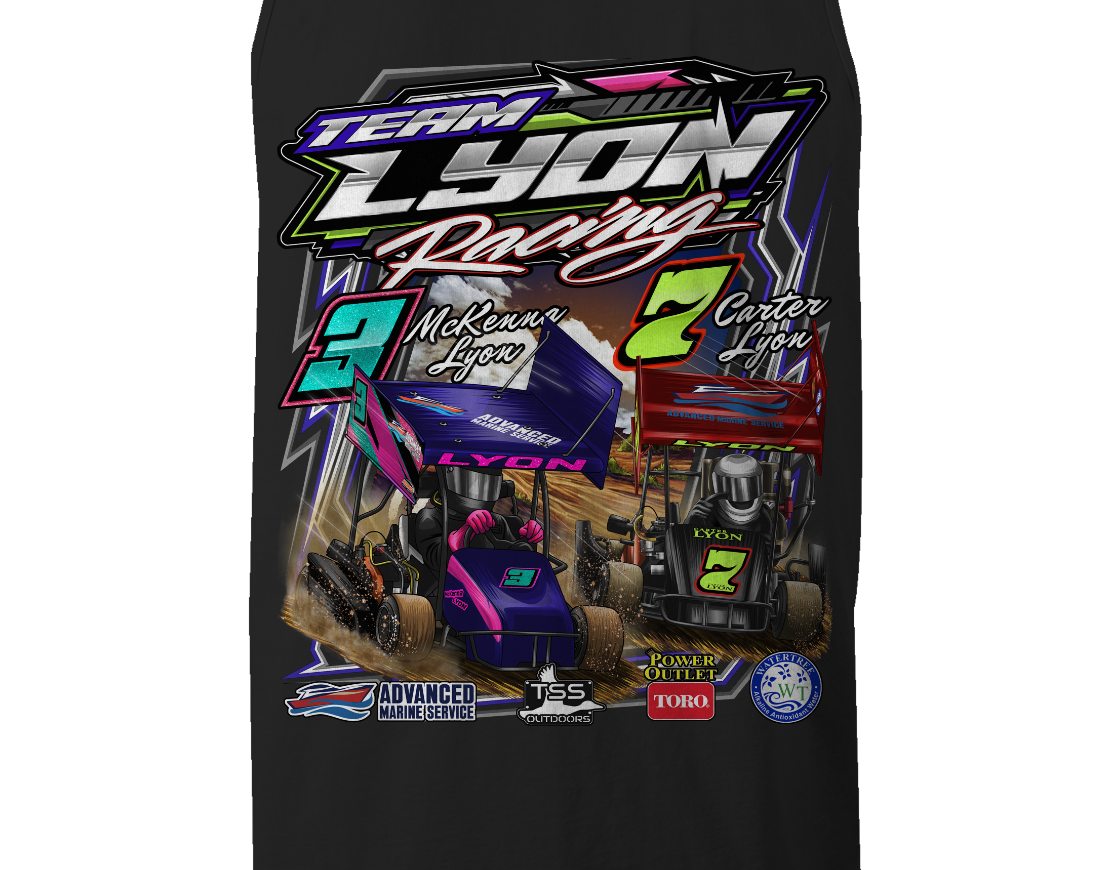 Support Team Lyon Racing 2025 with their custom apparel! Available in Black, Sports Gray and White. Graphics are direct to garment printed with a left chest image and a full back image.