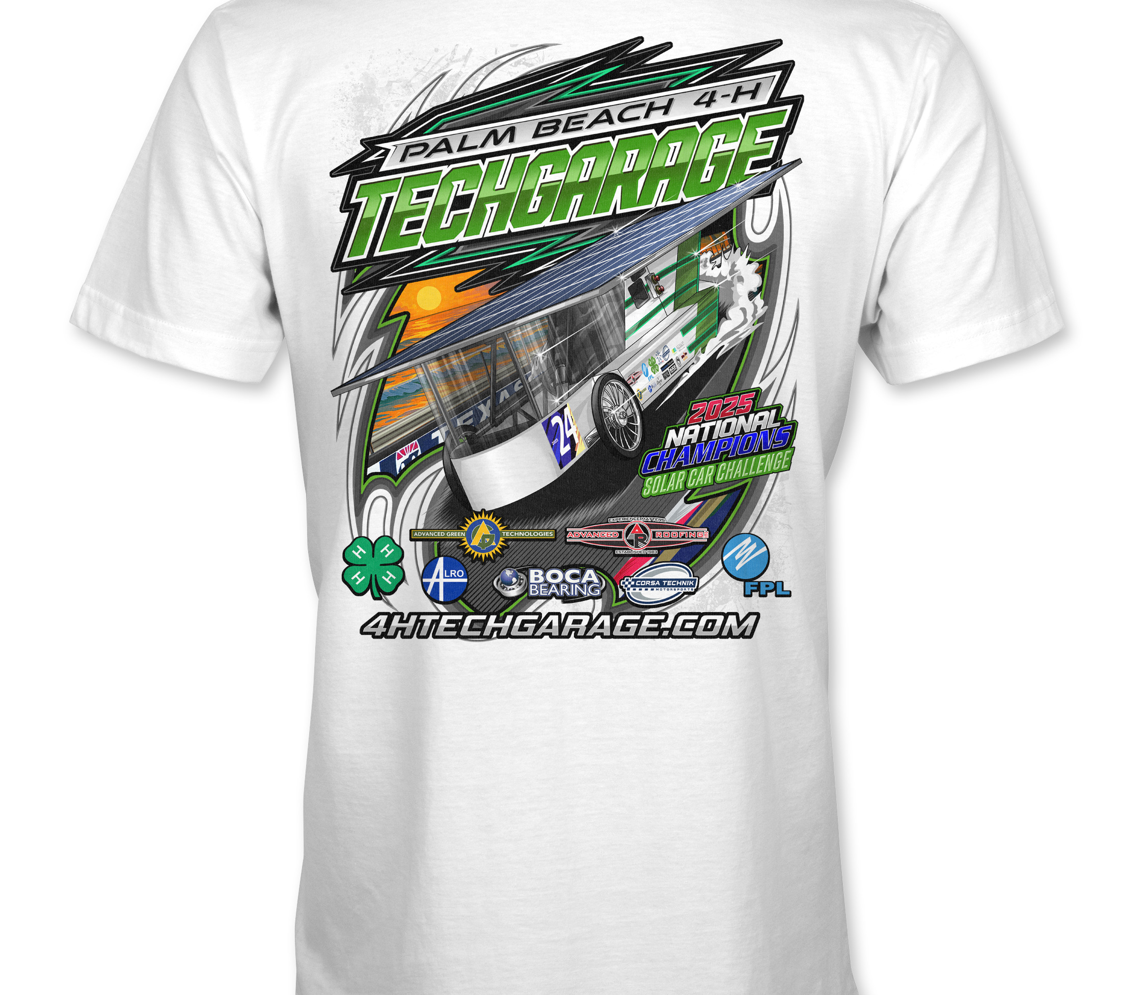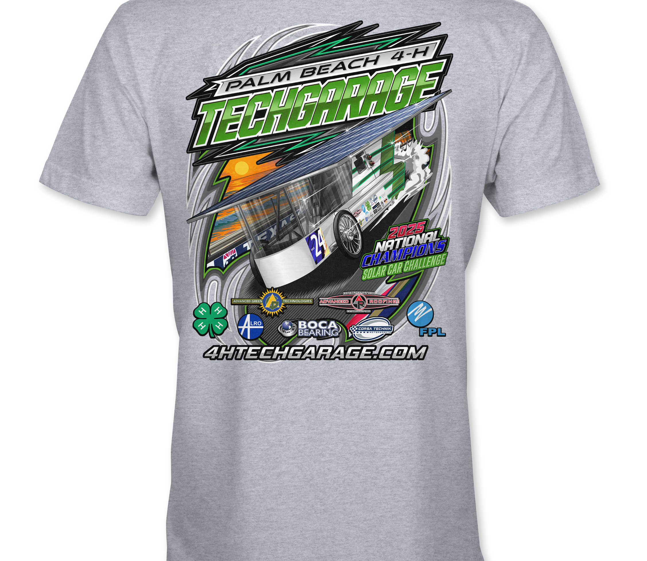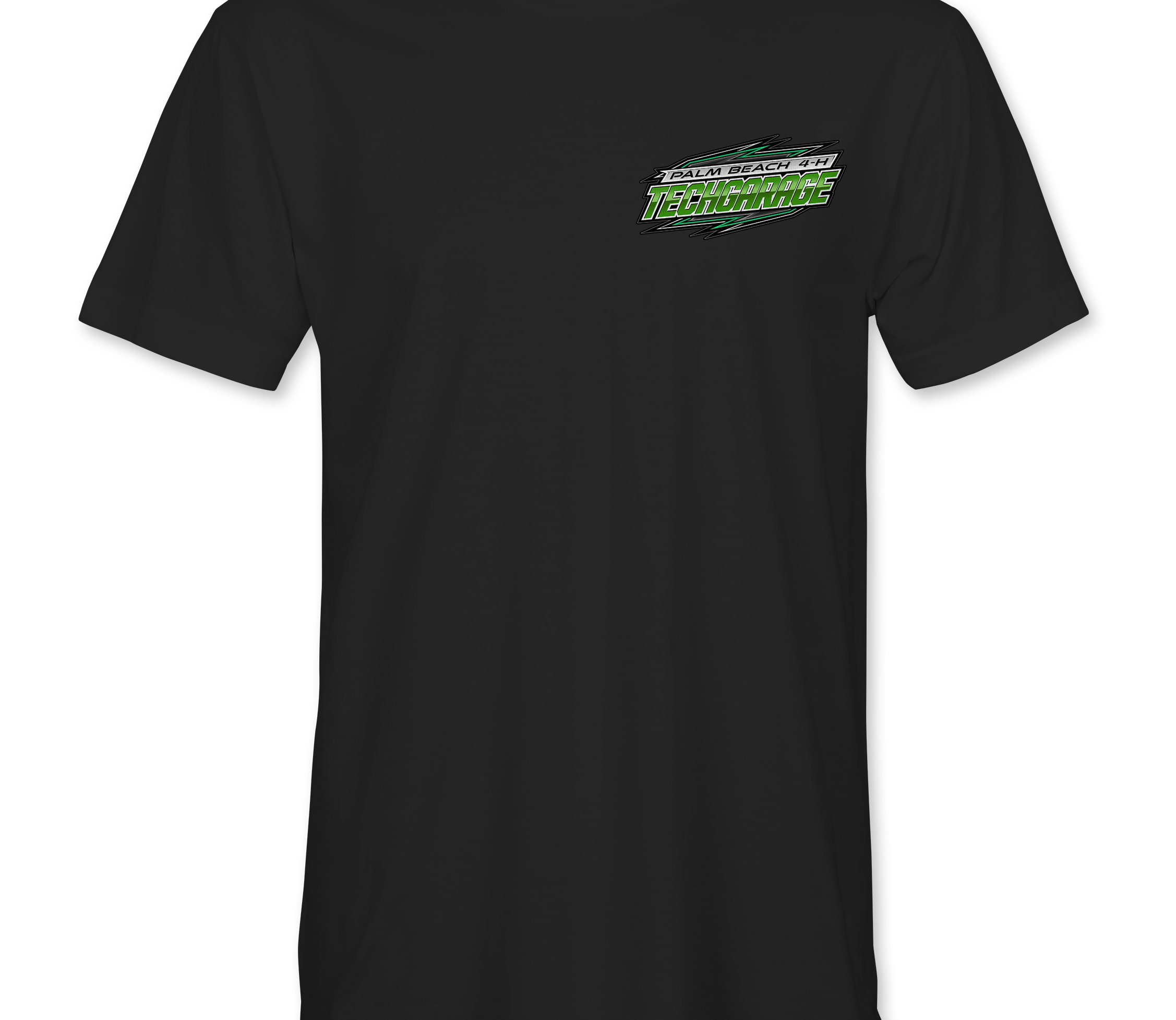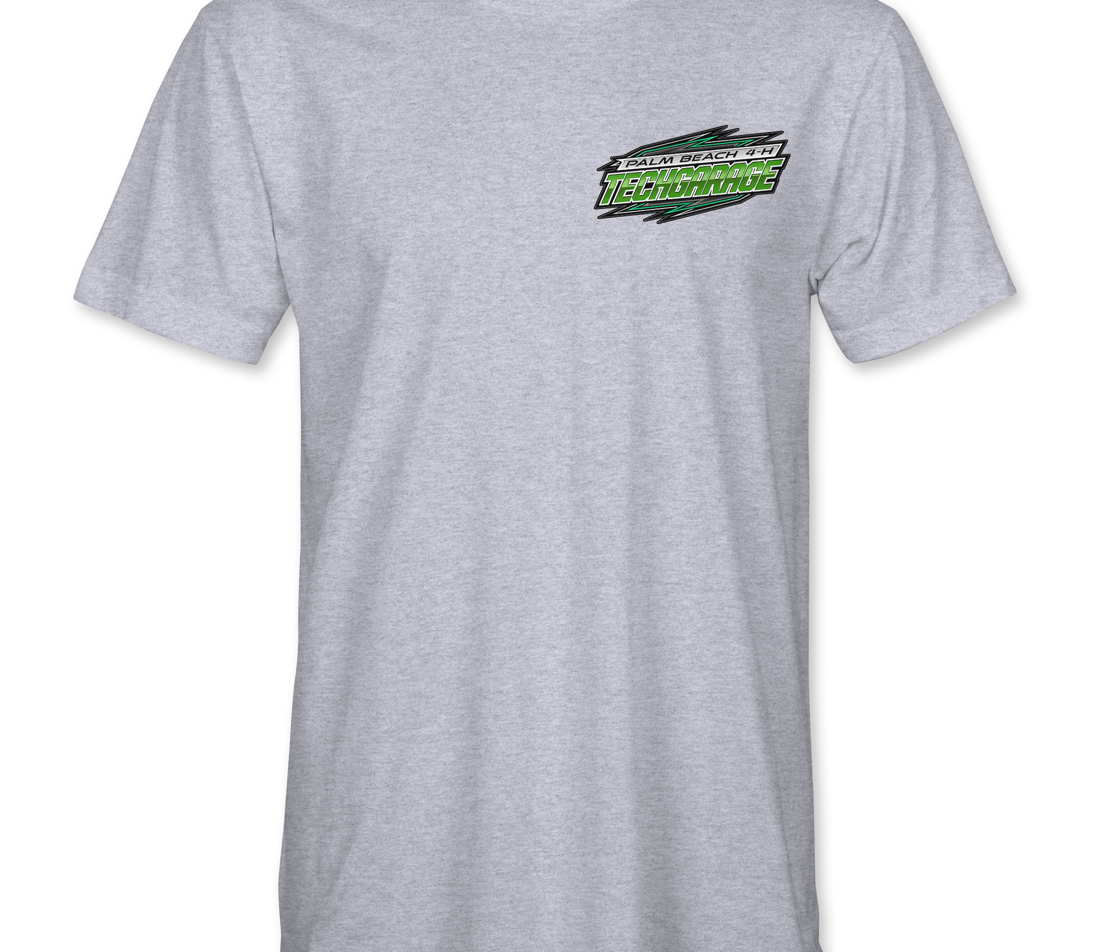 Support Techgarage 2025 with their custom apparel! Available in Black, Sports Gray, Neon Green and White. Graphics are direct to garment printed with a left chest image and a full back image.