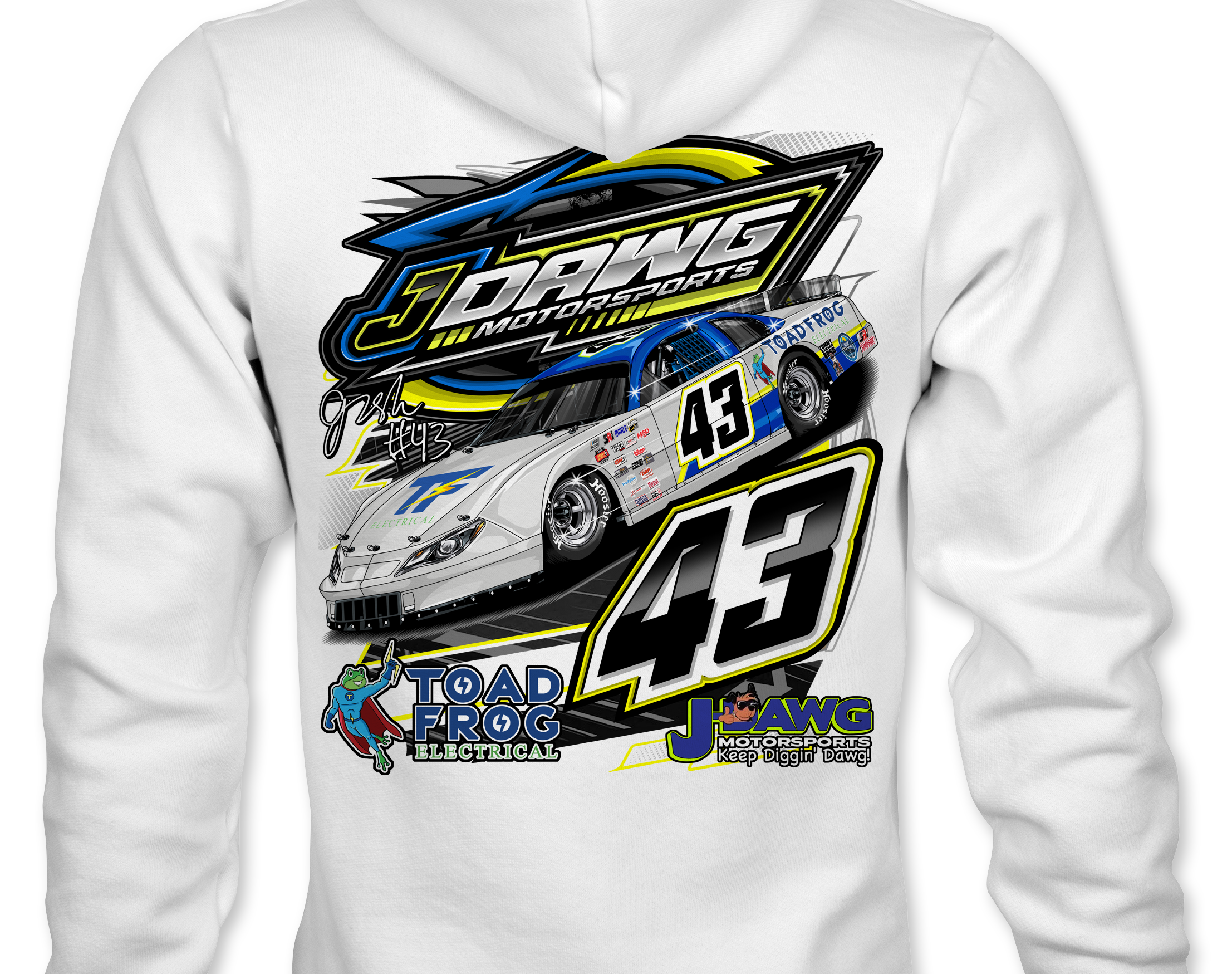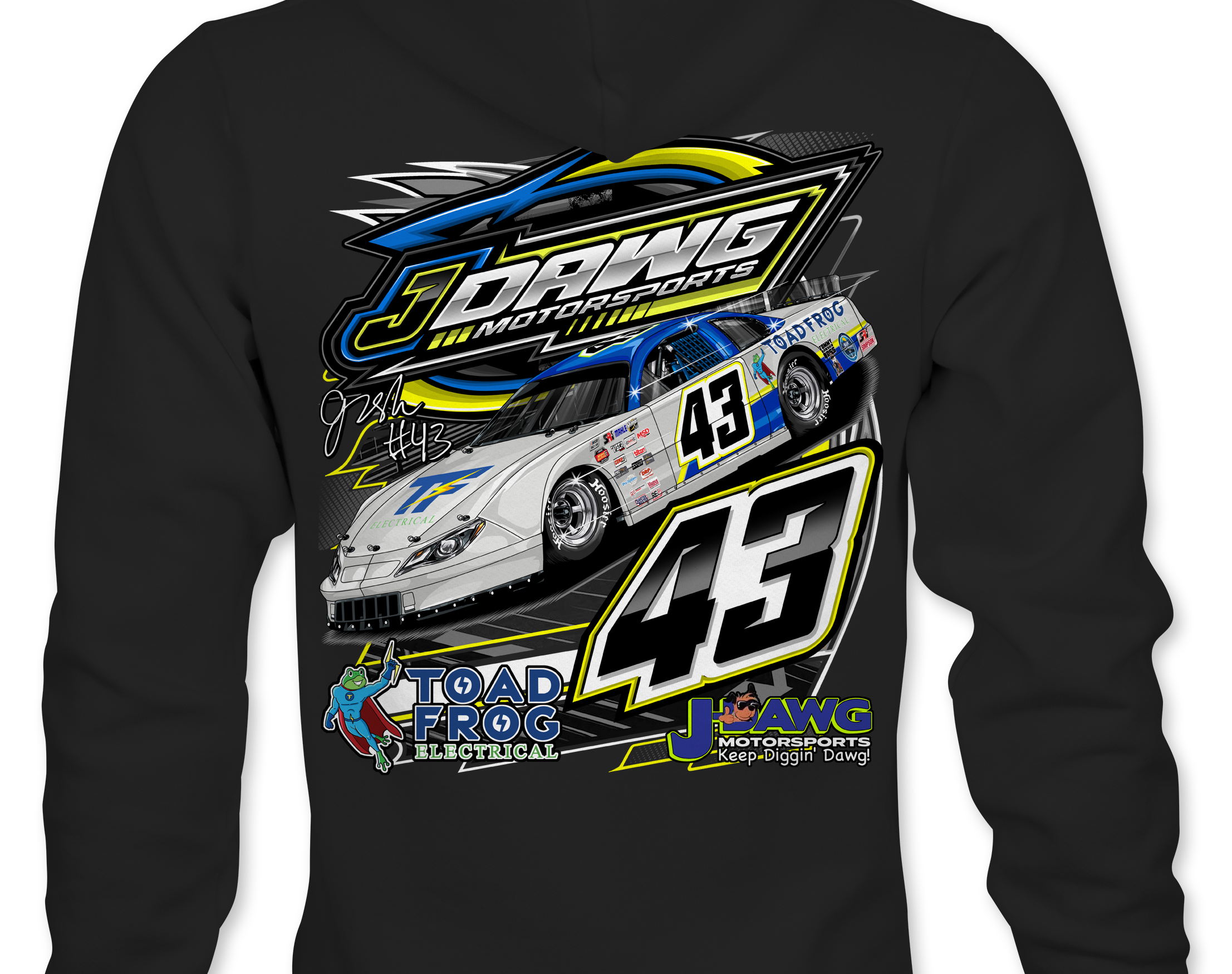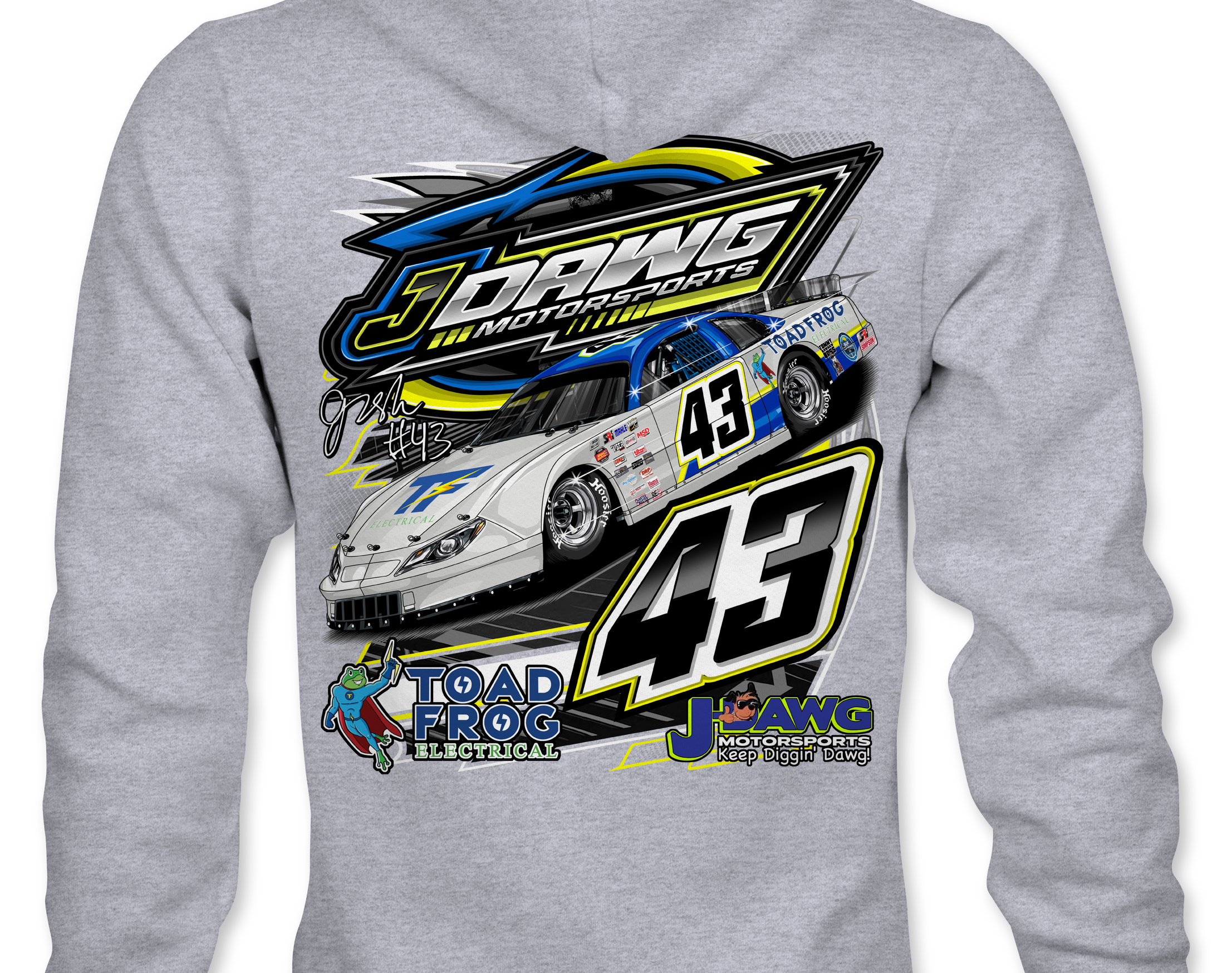 J Dawg Motorsports Official driver merchandise printed to order on premium apparel. Designed for race fans and supporters.