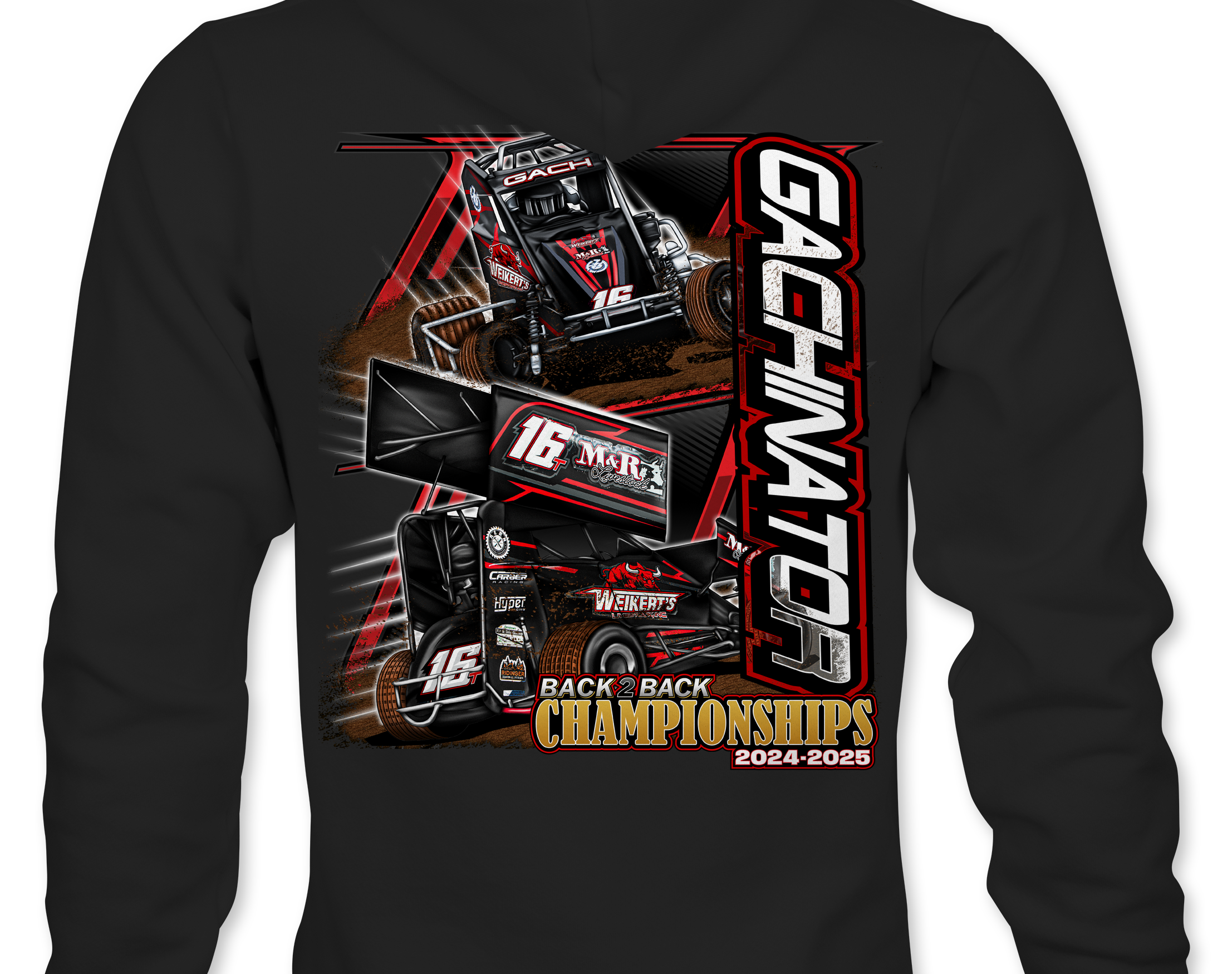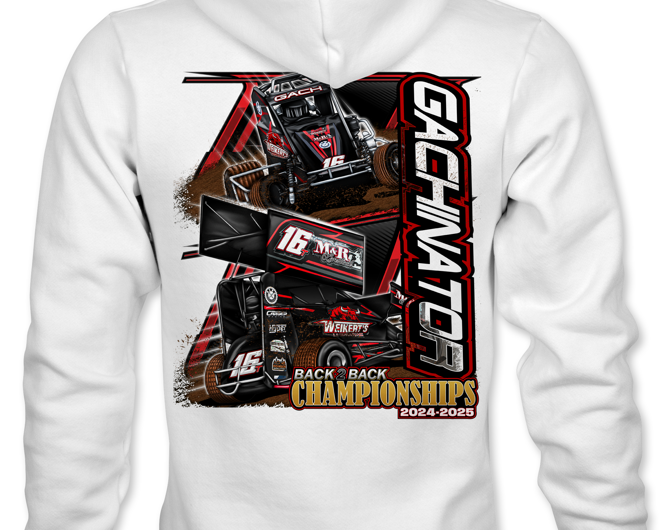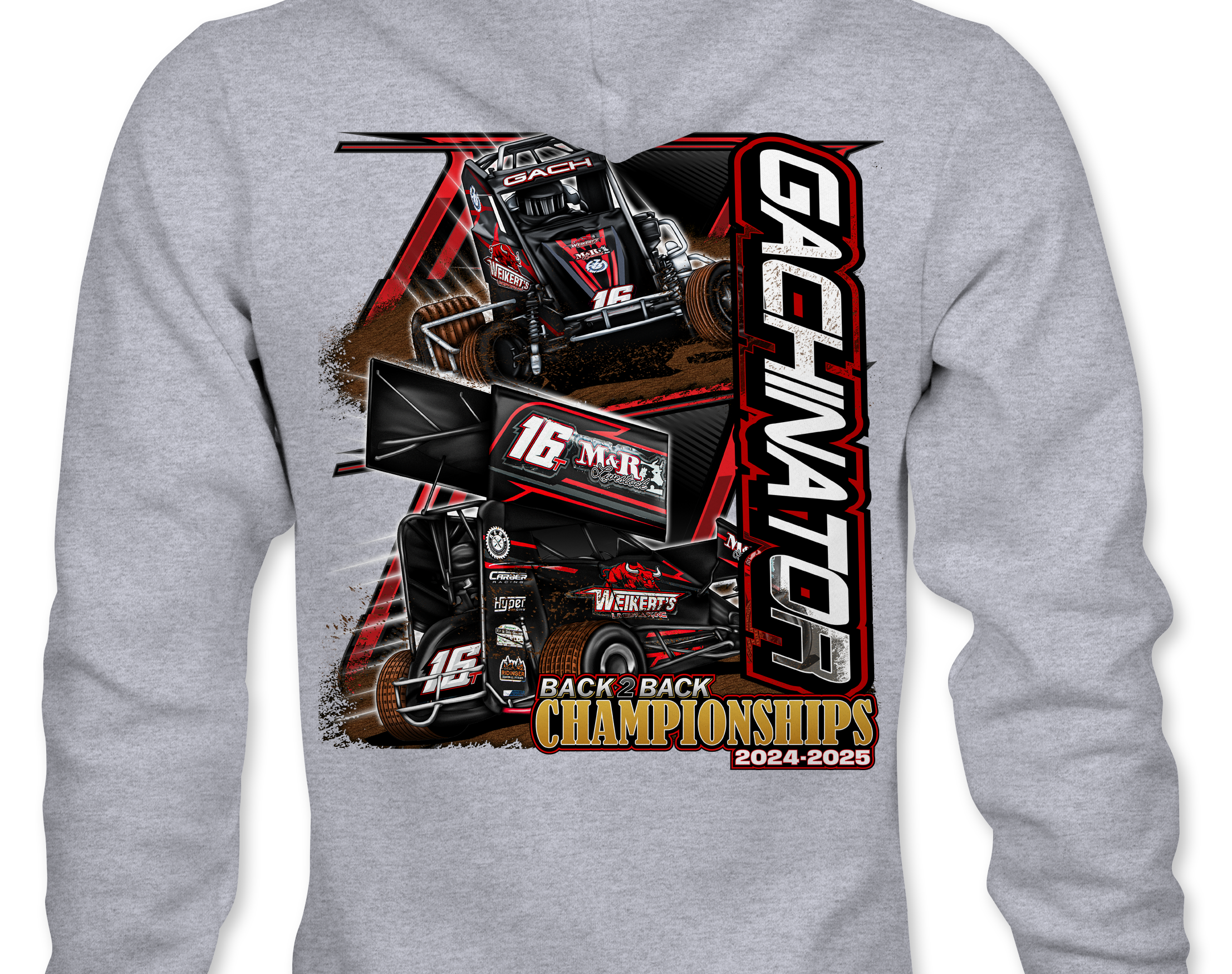 Support Trevor Gach 2025 with their custom apparel! Available in Black, Sports Gray and White. Graphics are direct to garment printed with a left chest image and a full back image.