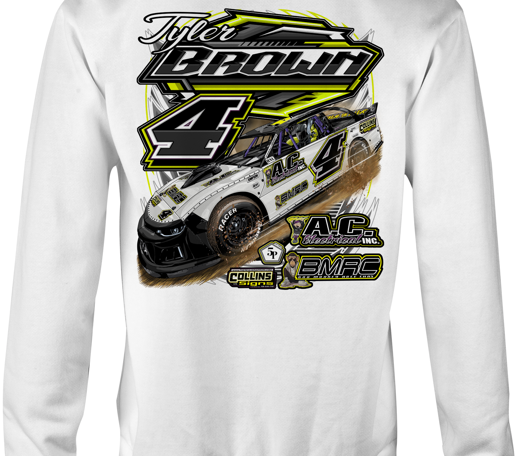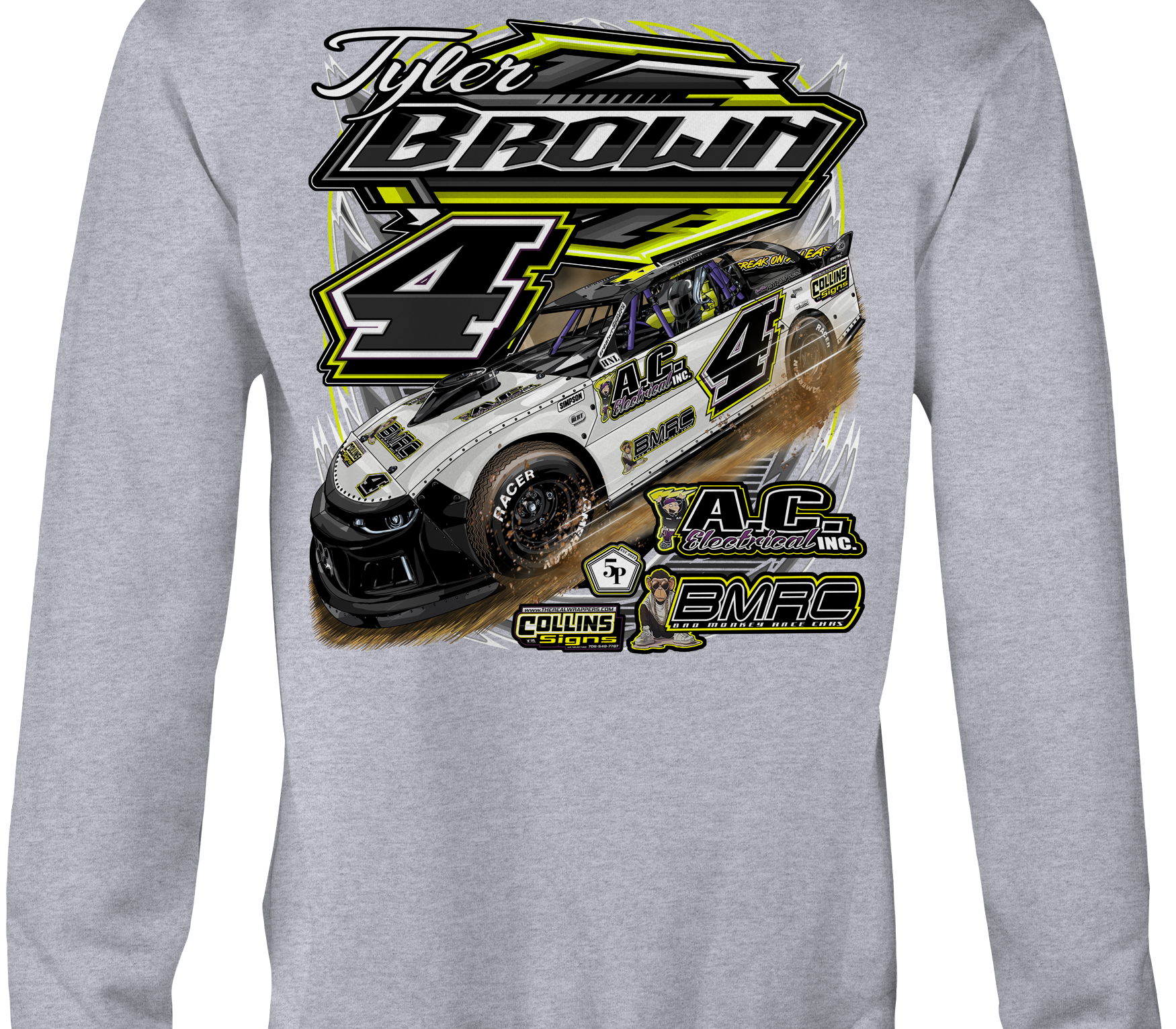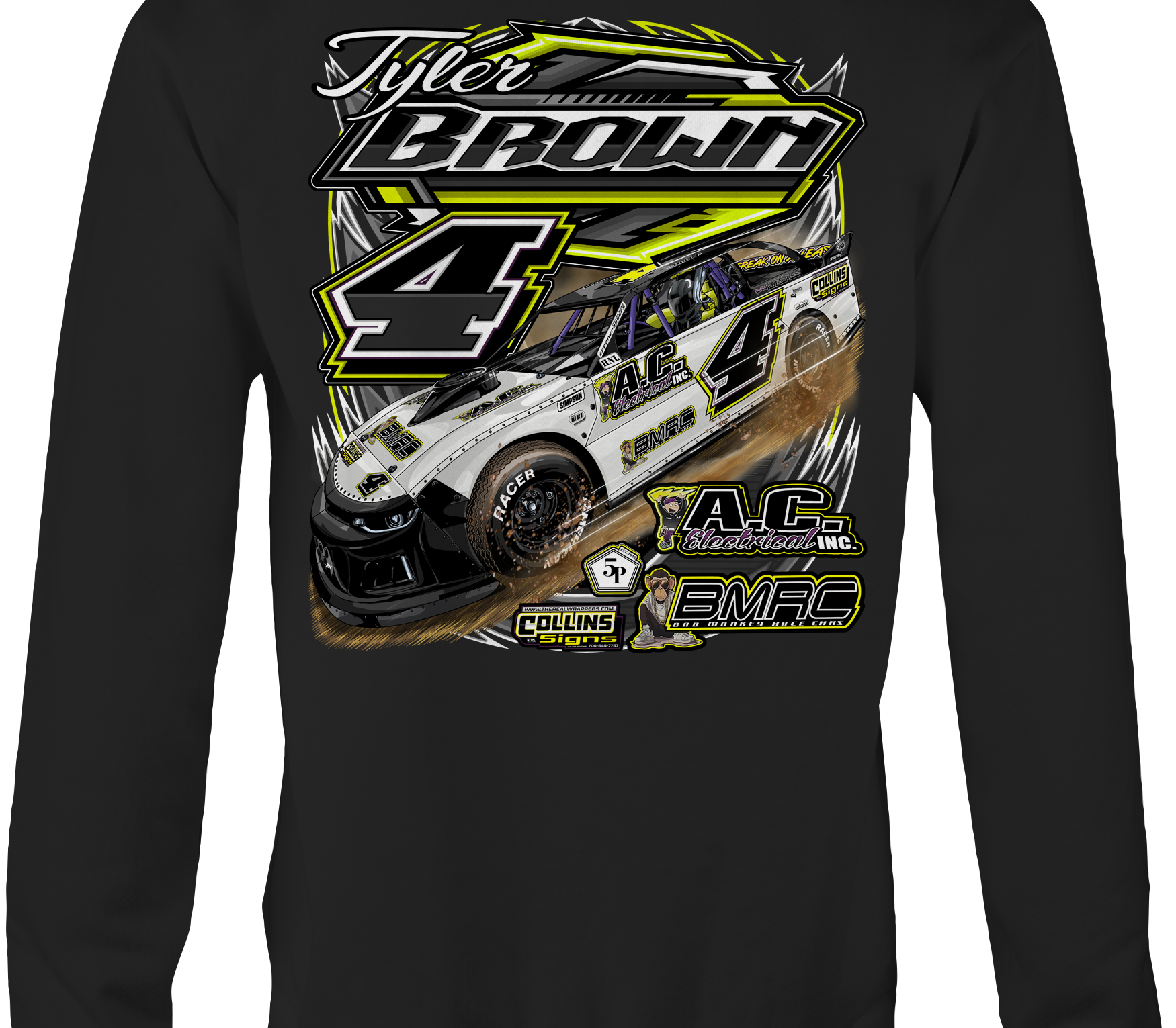 Support Tyler Brown 2025 with their custom apparel!  Available in Black, Sports Gray and White. Graphics are direct to garment printed with a left chest image and a full back image.
