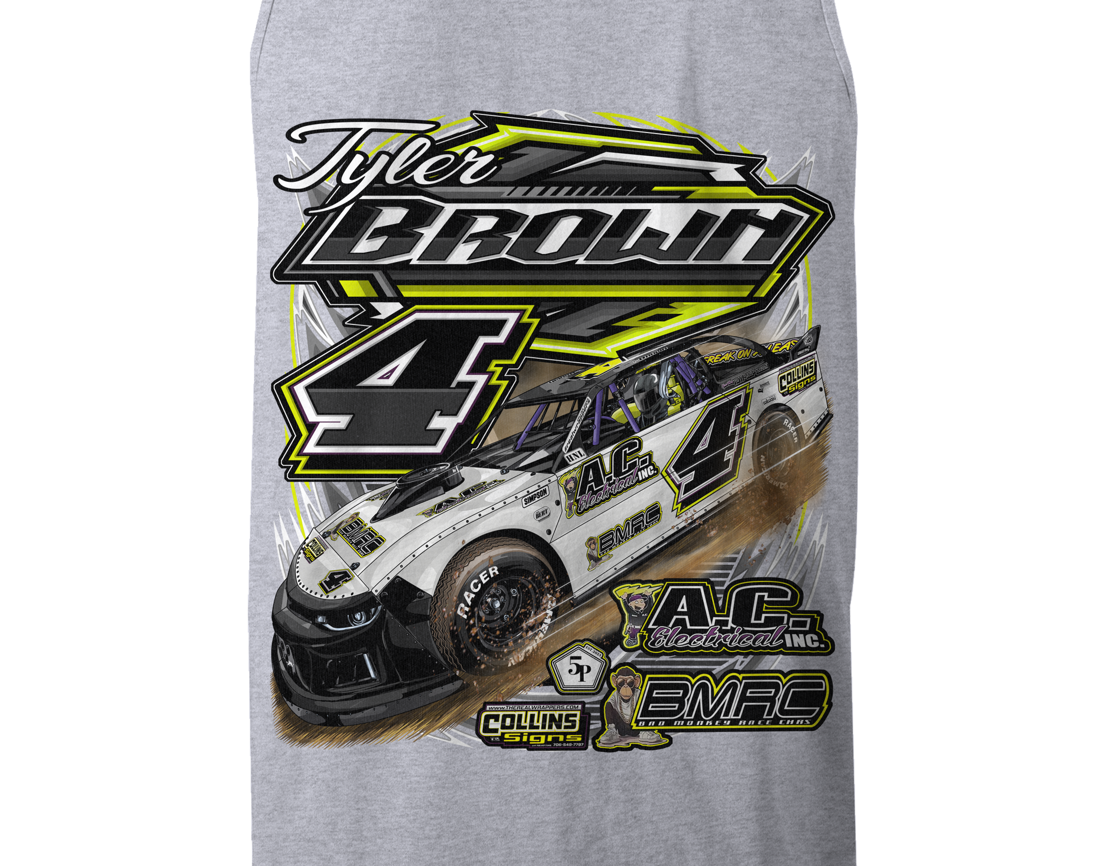Support Tyler Brown 2025 with their custom apparel! Available in Black, Sports Gray and White. Graphics are direct to garment printed with a left chest image and a full back image.