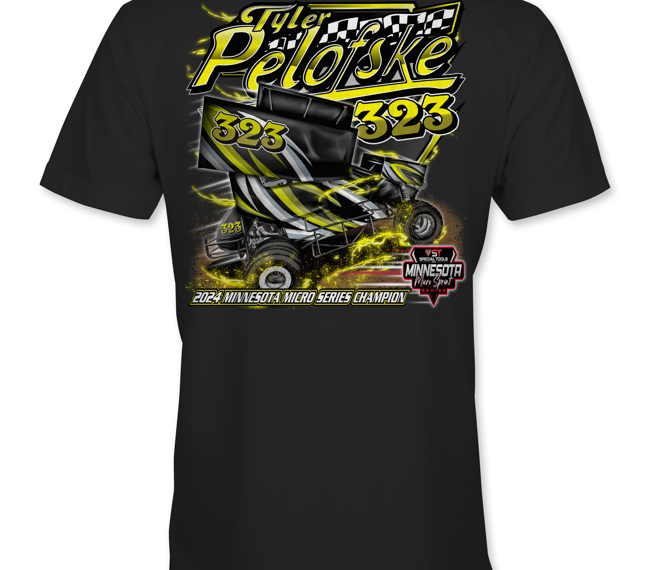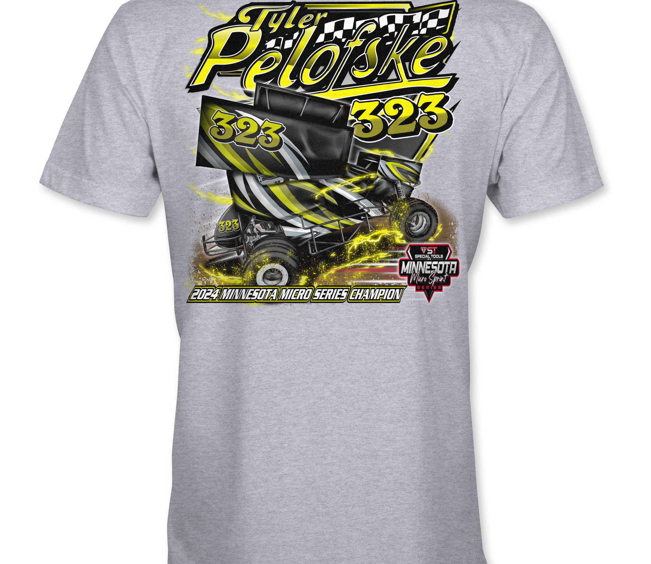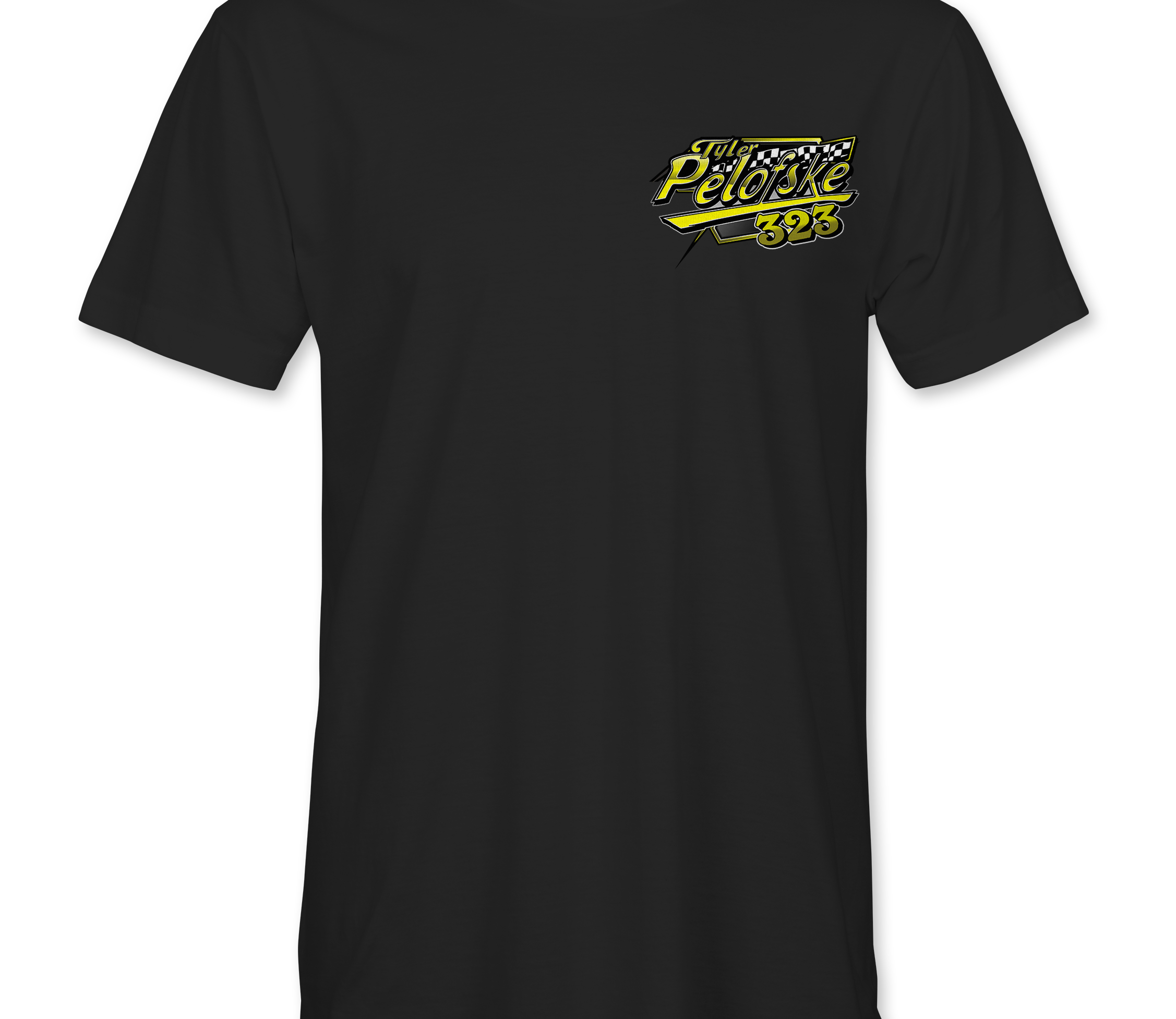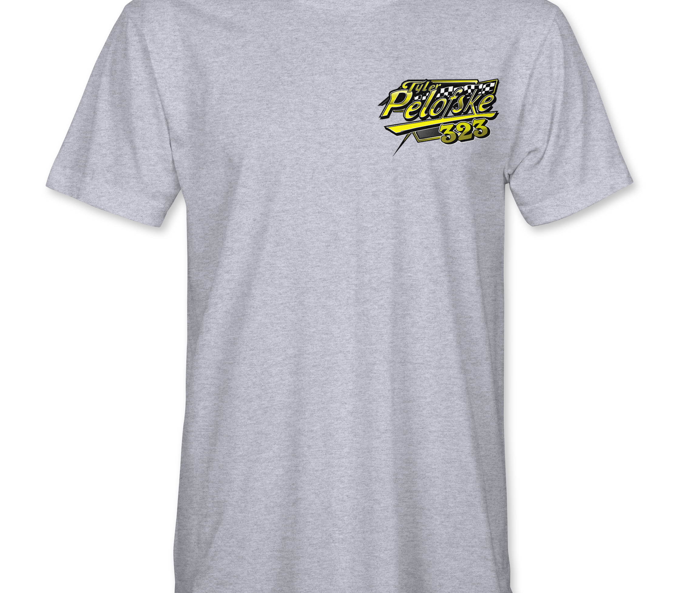 Support Tyler Pelofske with their custom apparel!  Available in Black, Sports Gray and White. Graphics are direct to garment printed with a left chest image and a full back image.