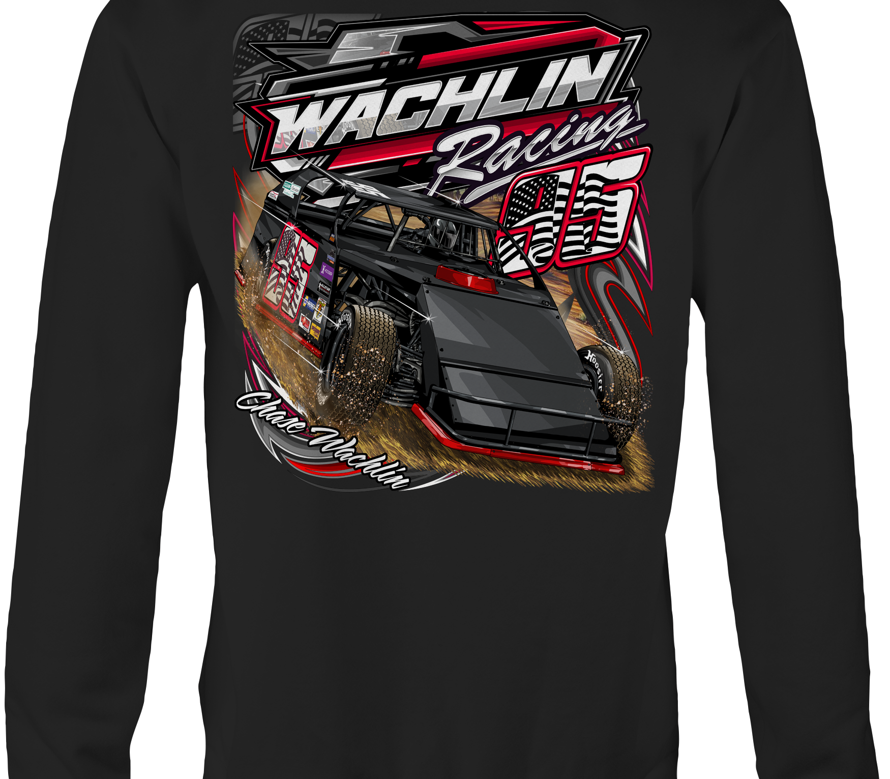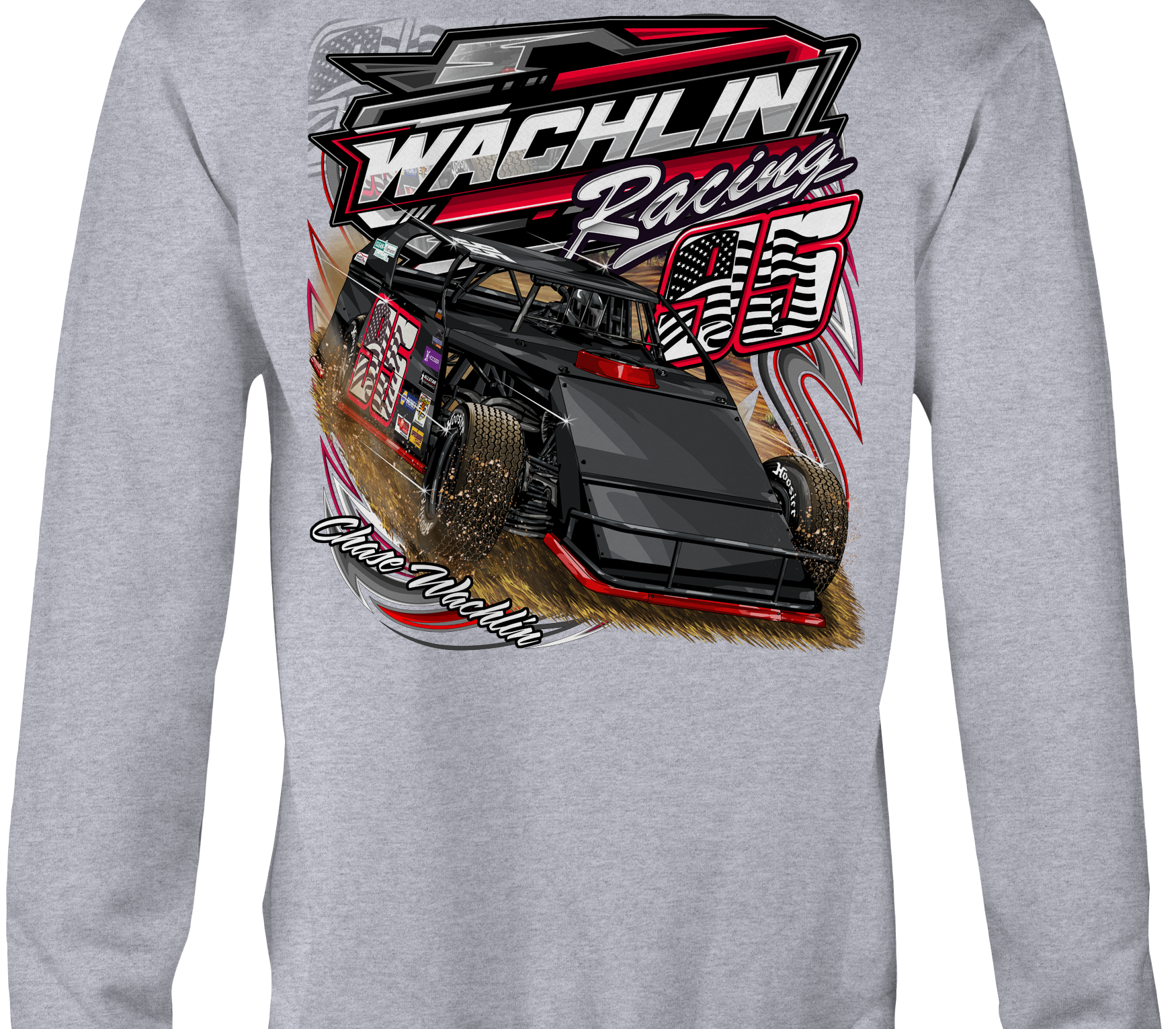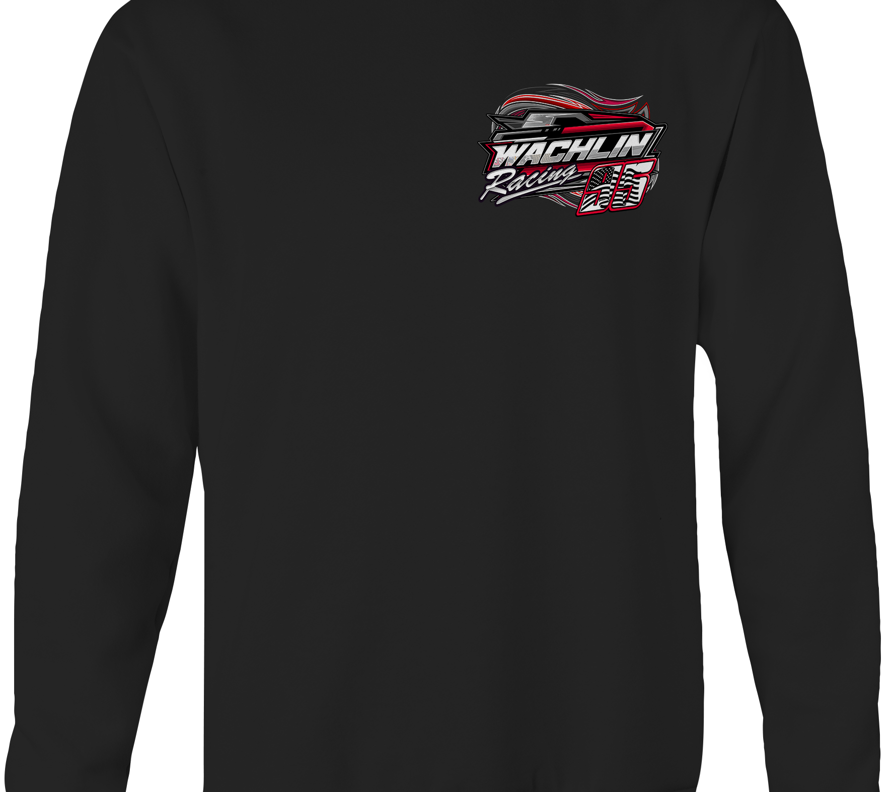 Support Wachlin Racing 2025 with their custom apparel! Available in Black, Sports Gray and White. Graphics are direct to garment printed with a left chest image and a full back image.