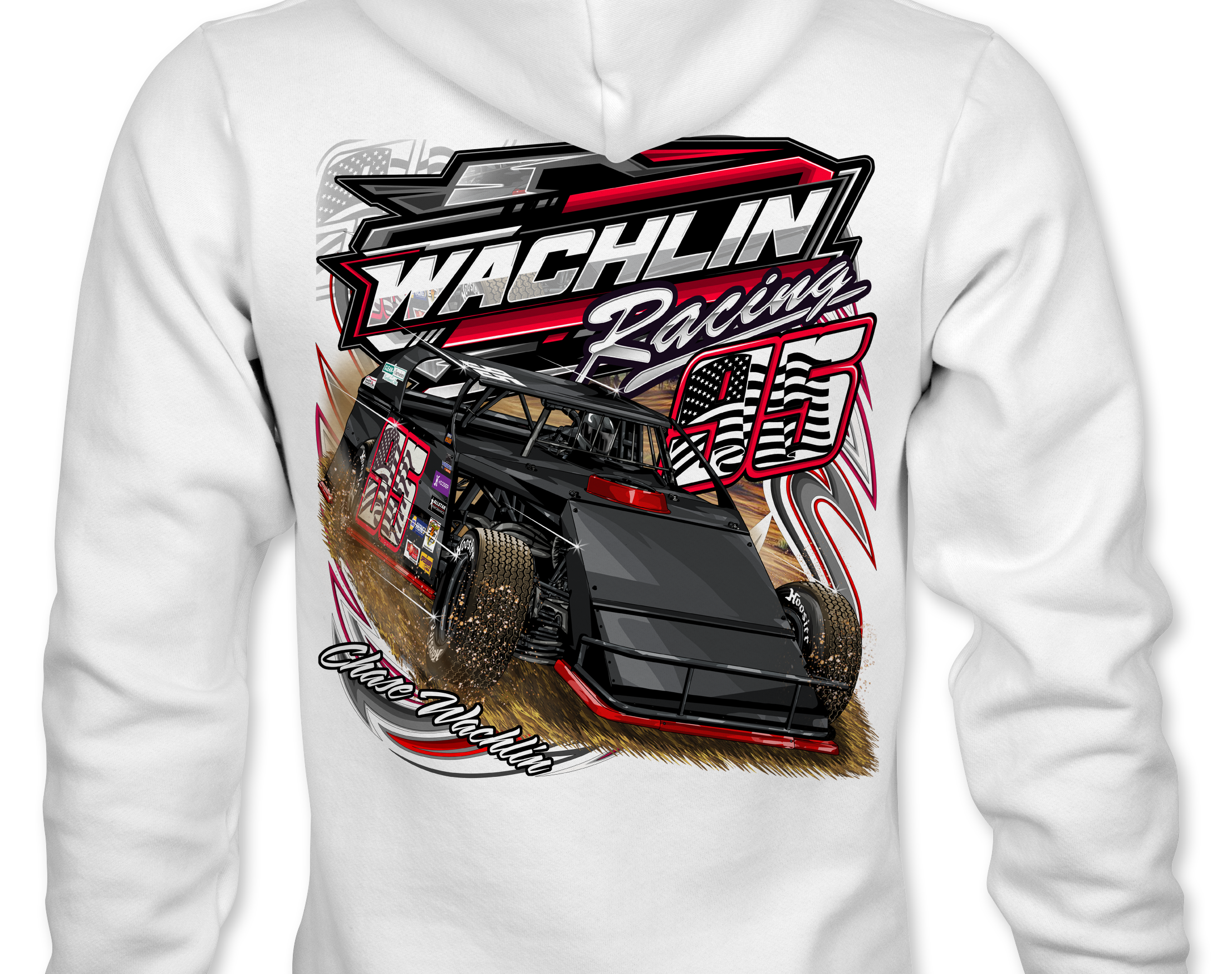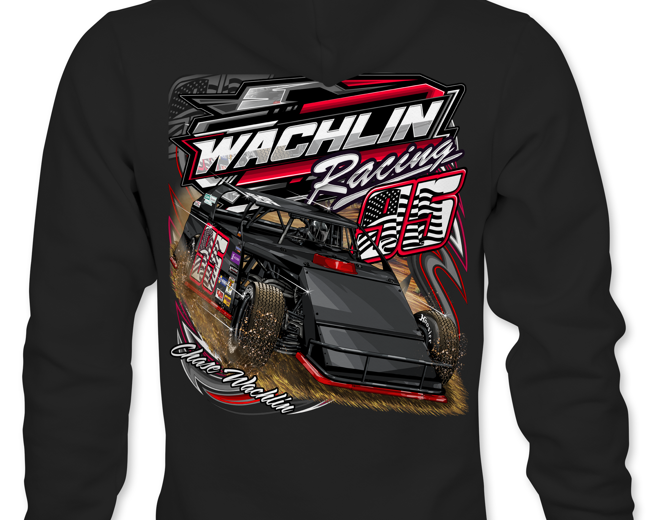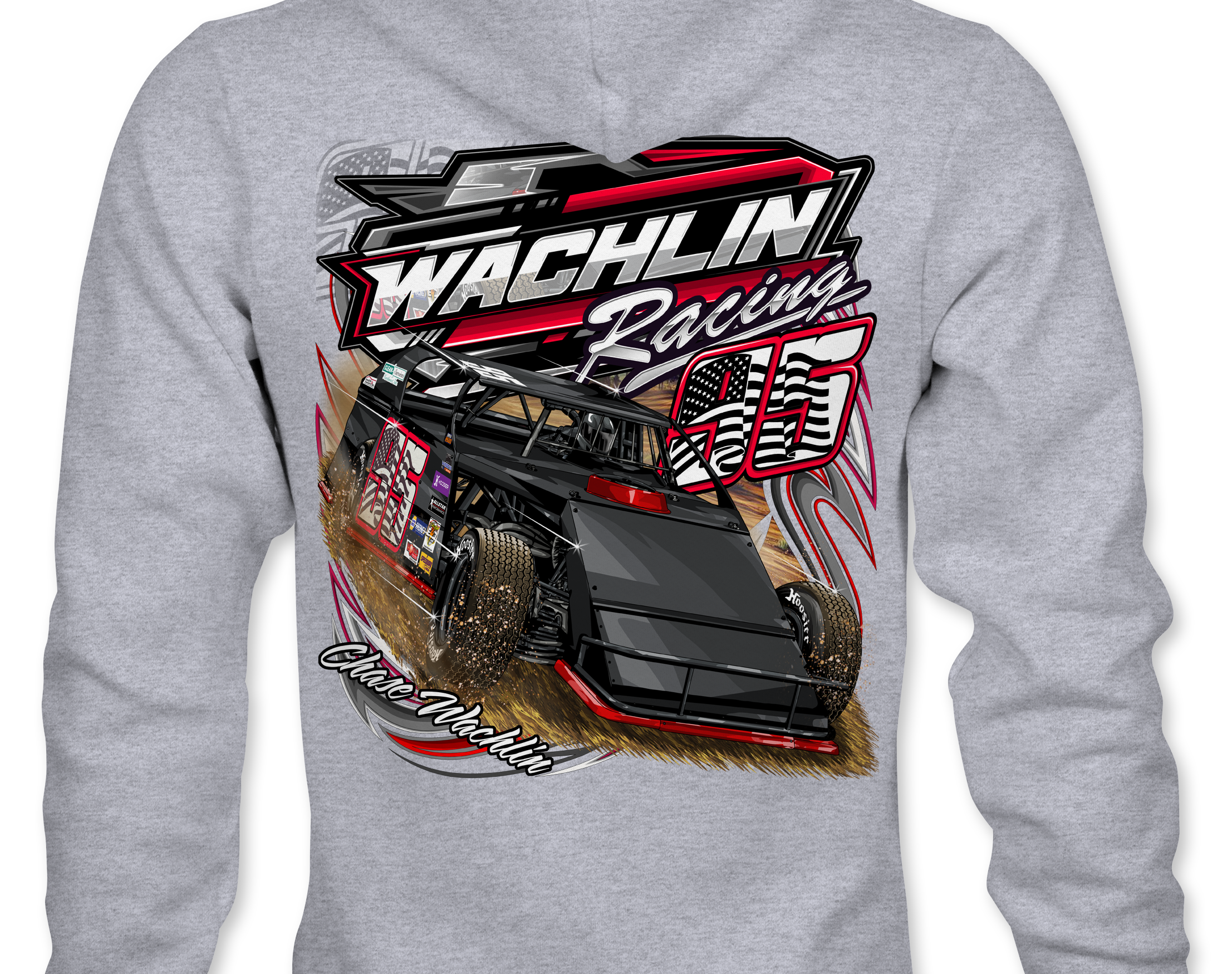 Support Wachlin Racing 2025 with their custom apparel! Available in Black, Sports Gray and White. Graphics are direct to garment printed with a left chest image and a full back image.