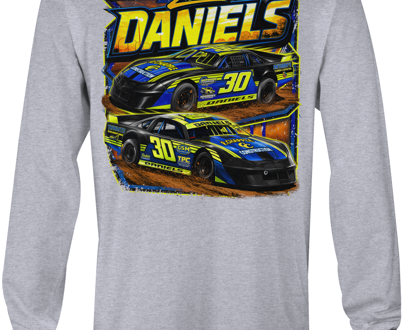 Support Zack Daniels 2025 with their custom apparel! Available in Black, Sports Gray and White. Graphics are direct to garment printed with a left chest image and a full back image.